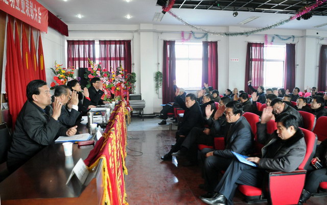 大會在莊嚴的國歌聲中拉開了序幕,首先由集團公司副總經理要保林做《二零一零年度工作總結(草案)》,總會計師于廣志做《二零一零年度財務工作報告》,監事會主席閆雙彥做《二零一零年度財務審核報告》,副總經理谷進寶做《二零一零年工作安排意見的報告(草案)》,工會主席黃春玲做《二零一零年度職代會工作總結及二零一一年度工作安排報告(草案)》。隨后全體與會代表對上述報告進行舉手表決,均全票通過。會后,集團公司董事長兼黨委書記張蘭柱同志做重要講話,總結了集團公司在二零一零年工作中的經驗與不足,激勵廣大職工、股東代表在新的一年里為企業的快速發展繼續作好排頭兵、發揮表率作用,與廣大員工一起為集團公司貢獻力量。