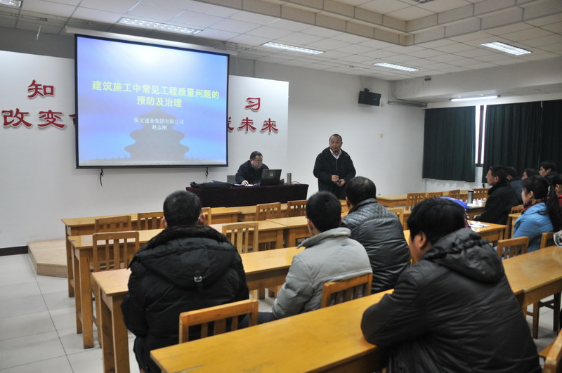 2012年1月9日至13日,集團公司在淮南六樓電教室開展一年一度的冬季培訓,主要對企業經營管理過程中所涉及到的施工質量、工程技術、質量管理、材料檢測、材料設備管理、勞動人事管理、安全管理等方面內容,對企業人員進行培訓、強化教育,為來年企業的經營及施工管理工作打下堅實的理論基礎。